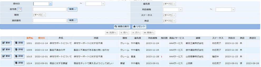 対応期限が経過しているクレーム案件で対応が未済の案件