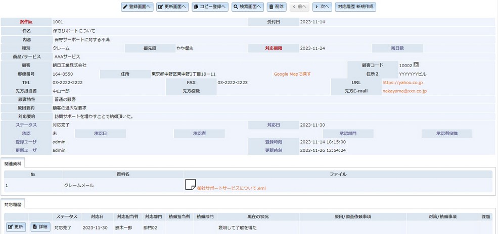 ◇案件基本情報と対応履歴情報の2階層構造