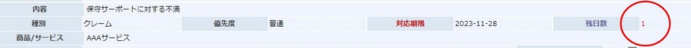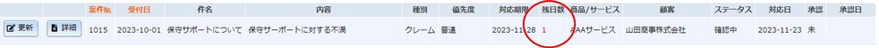 対応期限が迫った場合に残日数が赤色表示