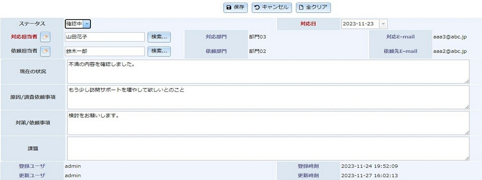クレーム/問合せシステム