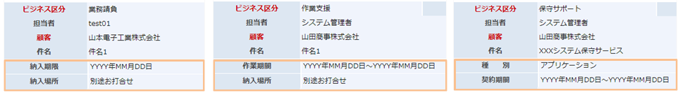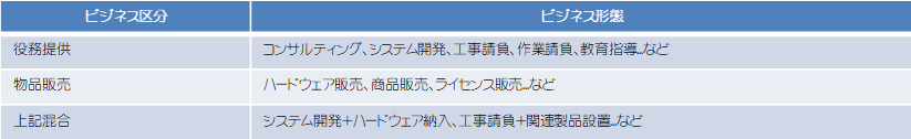 ビジネス区分は役務提供と物品販売の両方を用意しています。これら混合のビジネス形態にも対応可能です。